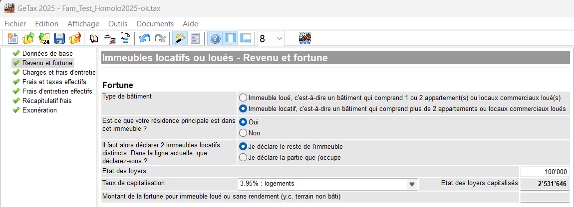 Si votre résidence principale se situe dans un immeuble locatif que vous possédez, il faut tout déclarer dans la partie "15.20 Immeubles locatif" avec 2 lignes.