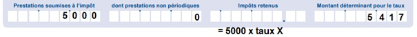 (5'000 x taux déterminant Y) x 5 mois – prélèvements de juillet à novembre |