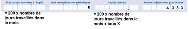 Dans les cas où les périodes de travail commencent ou s’interrompent au cours d’un mois, il faut appliquer au salaire effectivement obtenu, le taux d'impôt applicable au salaire qui aurait été perçu en cas d'activité durant un mois entier.