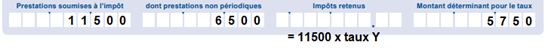 11'500 francs (5'000 + 2'500 (13e salaire prorata) + 4'000 (bonus)) x taux déterminant Y |