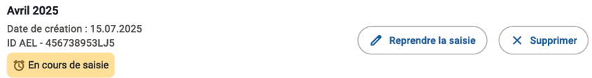 Si une liste En cours de saisie existe pour cette même année fiscale, vous devez la reprendre en cliquant sur Reprendre la saisie ou bien la supprimer si elle a été créée par erreur.