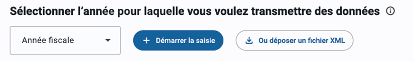 Pour démarrer une nouvelle saisie ou corriger des données déjà transmises, sélectionnez l’année puis cliquez sur Démarrer la saisie