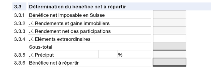 Si vous avez procédé à une répartition des rendements et gains immobiliers, déduisez le montant total (chiffre 3.1.6).