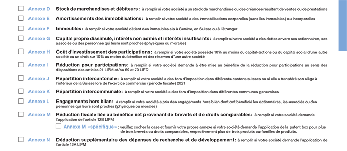 Les autres annexes ne sont à remplir que si votre société est concernée. Le cas échéant, cochez la case correspondante en regard du titre de l’annexe.