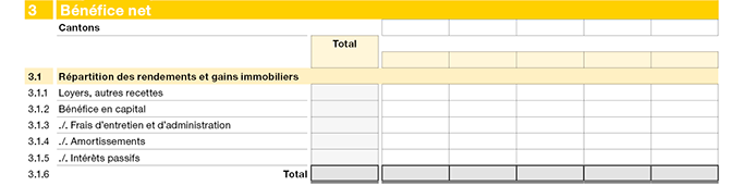 Si vous avez procédé à une répartition des rendements et gains immobiliers, déduisez le montant total (chiffre 3.1.6).