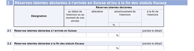 2. Réserves latentes déclarées à l'arrivée en Suisse et/ou à la fin des statuts fiscaux