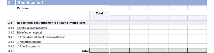 Si vous avez procédé à une répartition des rendements et gains immobiliers, déduisez le montant total (chiffre 3.1.6).